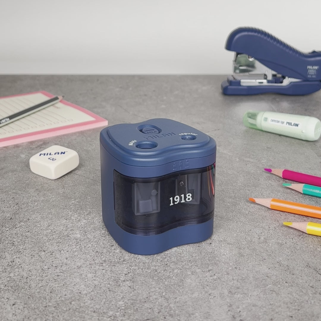 Sacapuntas eléctrico doble (uno estándar y otro MAXI) con un gran depósito.